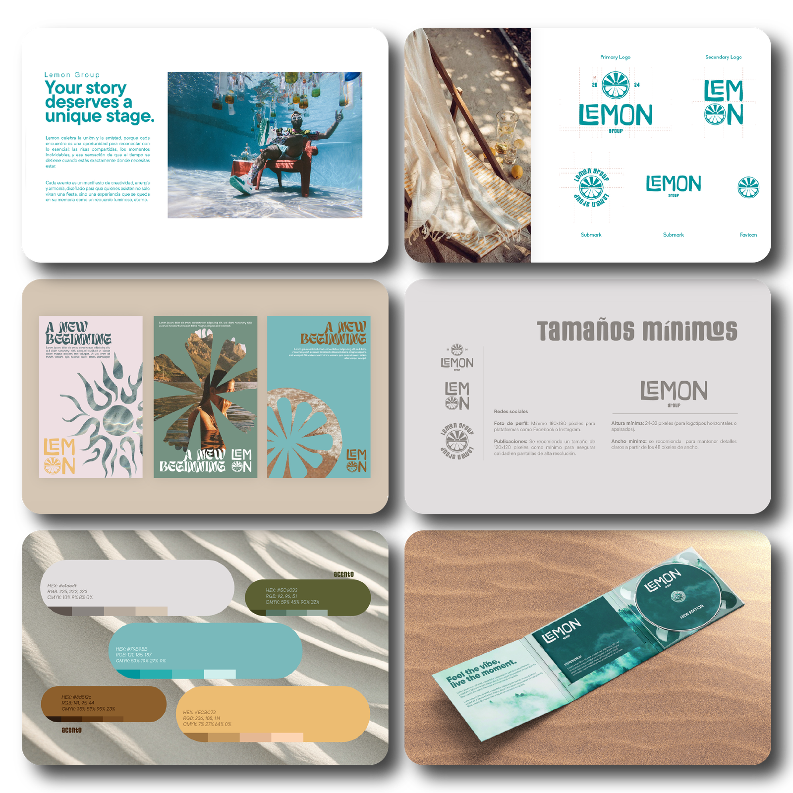 Diseñamos la identidad visual de Lemon Group, una productora de eventos con una temática inspirada en el verano, la naturaleza y un estilo casual. El objetivo fue transmitir los valores esenciales de la marca a través de un sistema visual coherente, moderno y escalable, adaptado a todas las plataformas digitales y alineado con las tendencias actuales.
